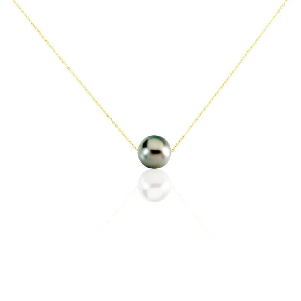 Collier Chaine Forçat Diamanté Or Jaune 375/1000 Perle De Culture Tahiti 9/10mm Semi-ronde 42cm