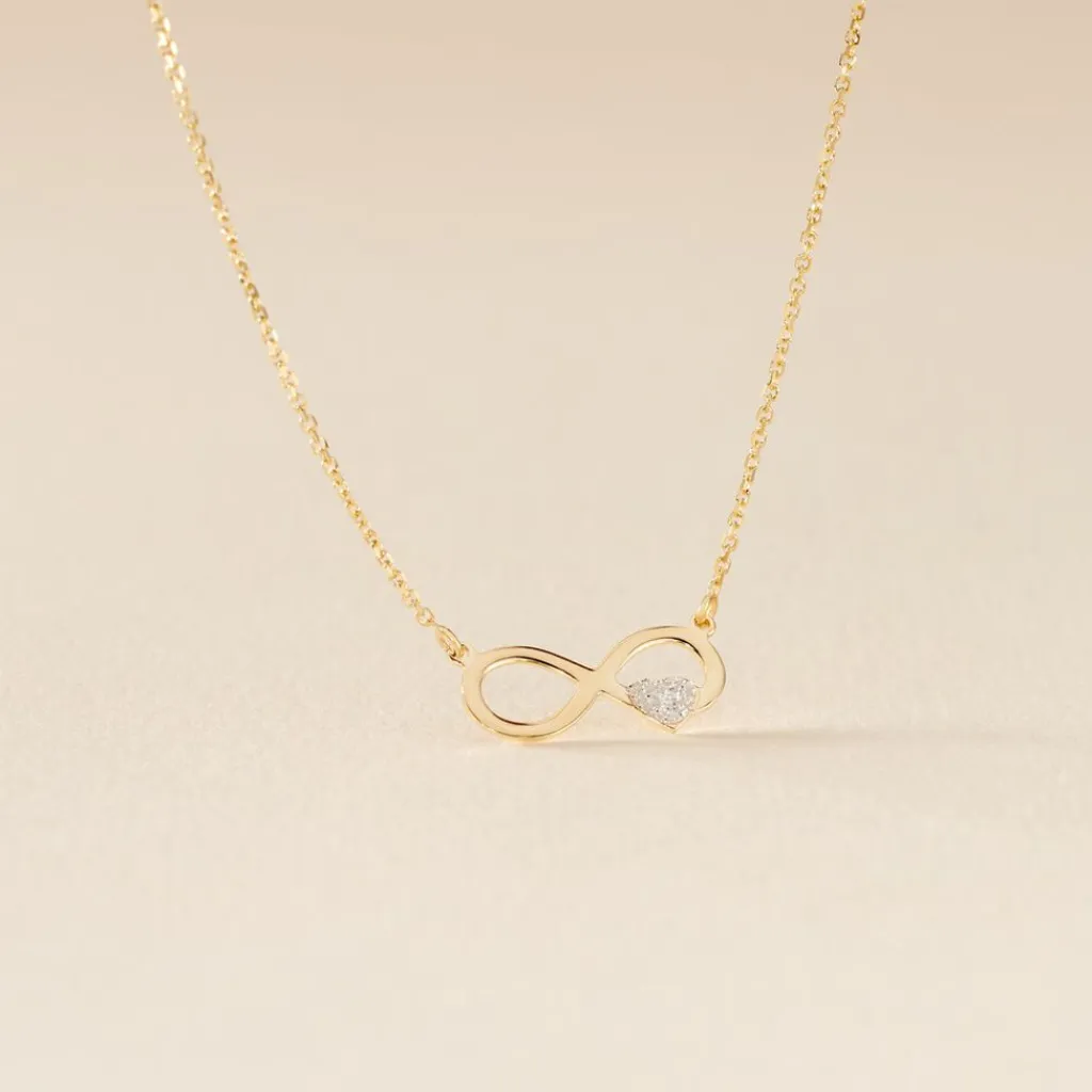 Collier Or Jaune 375/1000 Infini Et C艙ur Glitter Argente Maille Jaseron 40+2cm