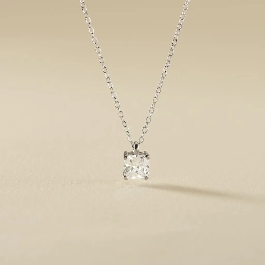 Collier Solitaire Argent 925/1000 lyanna Sertis Griffes Oxyde De Zirconium 6mm Taille Coussin Maille Forçat 45cm