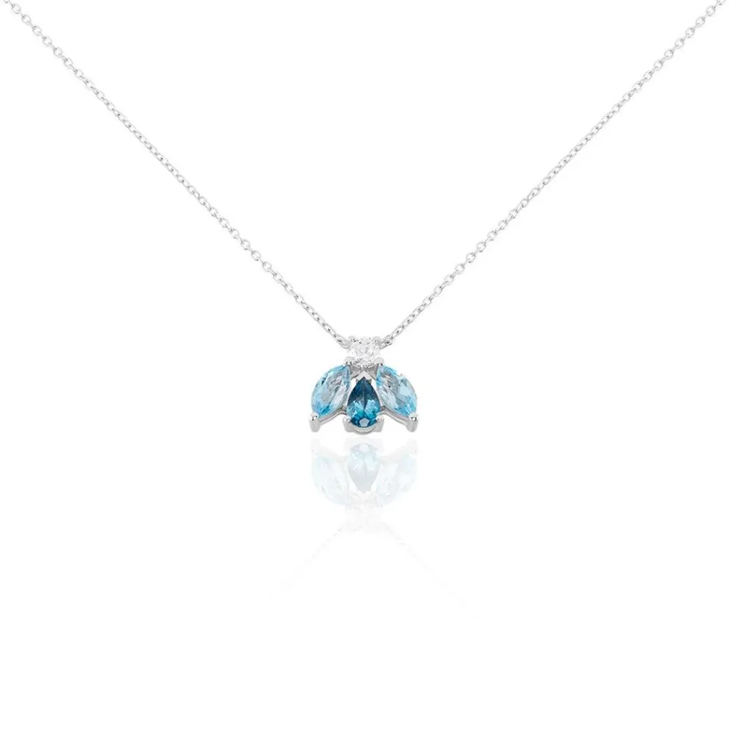 Collier Or Blanc 375/1000 Motif Pétale Topaze Serti Griffes Maille Forçat 42cm