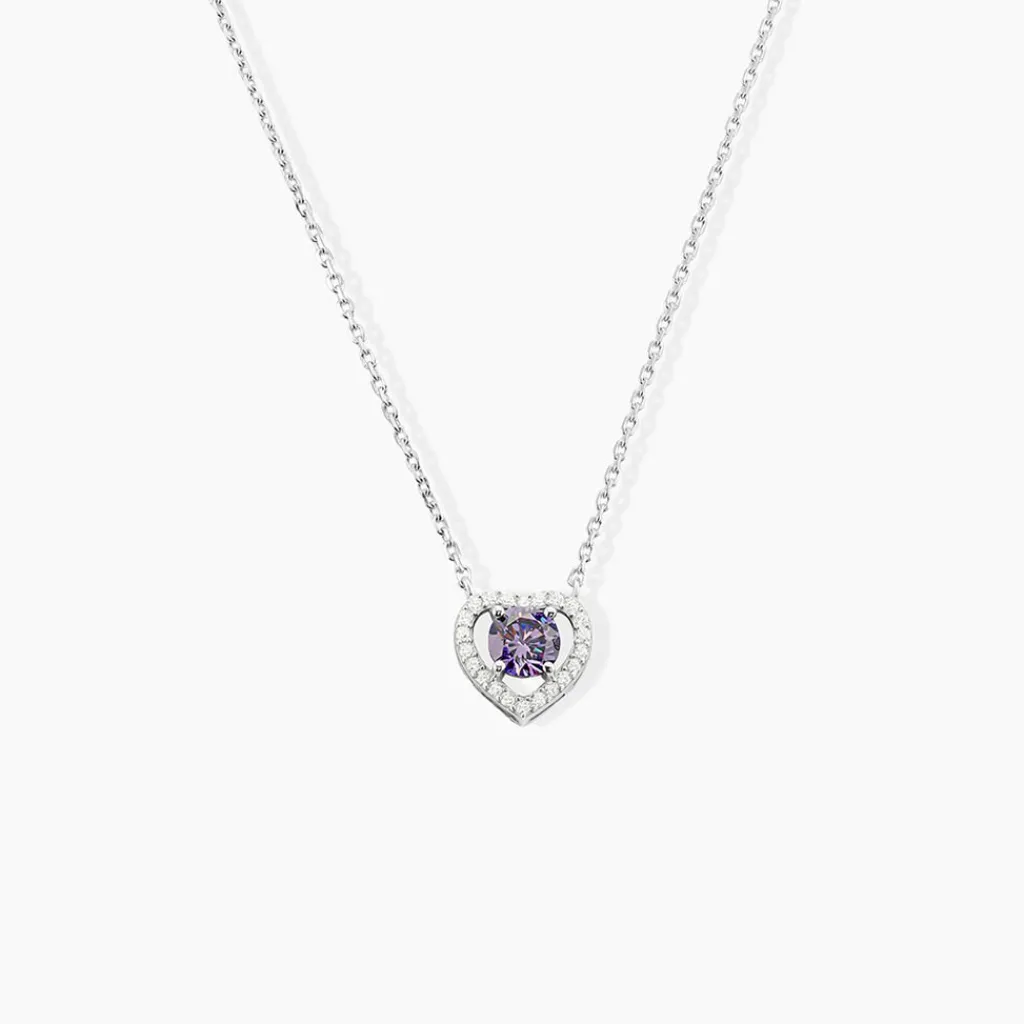 Collier Argent Blanc 925/1000 C艙ur Oxyde De Zirconium Aubergine Et Pavage Maille Forçat 40+4cm