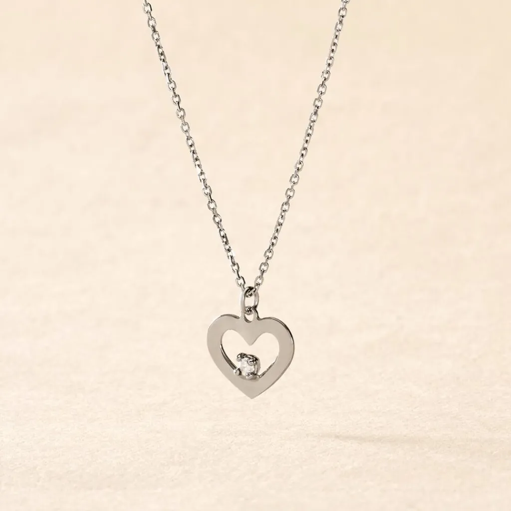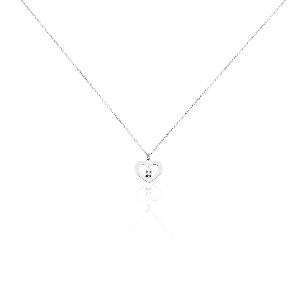 Collier Or Blanc 375/1000 Sweet Heart C艙ur Et Diamant Blanc 42cm