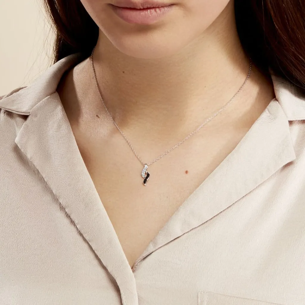 Collier Argent 925/1000 sylvie Vagues Oxydes De Zirconium Noirs Et Blancs