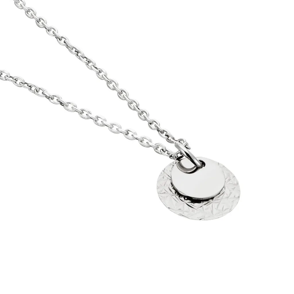 Collier Argent Blanc 925/1000 Pastille Effet Diamanté Maille Forcat 45cm