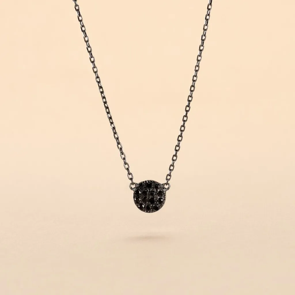 Collier Or Blanc 375/1000 Pavage Diamants Rhodie Noirs 0.46mm 42cm