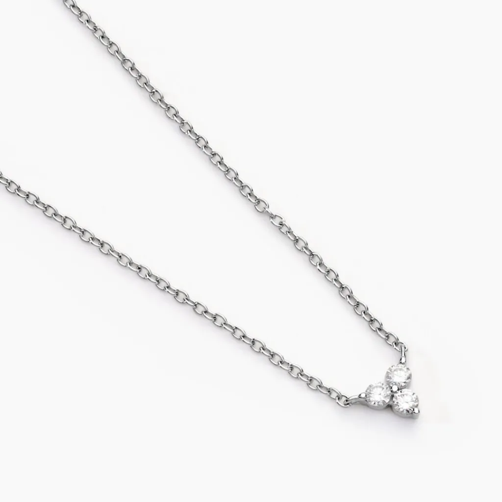 Collier Argent Blanc 925/1000 Fleur Oxydes De Zirconium Serti 2 Griffes Maille Forçat 42+3cm