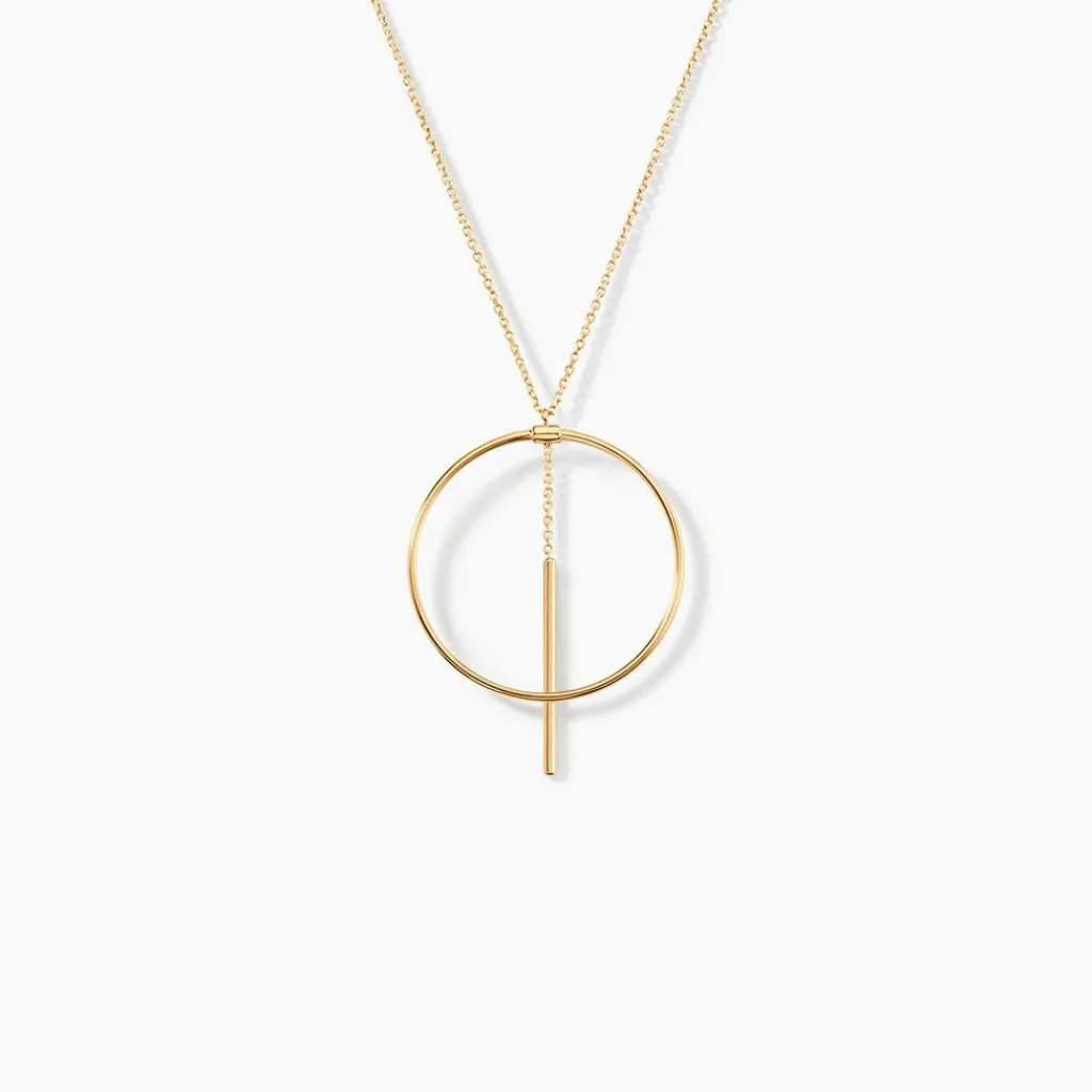 Collier Or Jaune 375/1000 Cercle Ajoure + Petite Barre Pendante Maille Jaseron 42cm