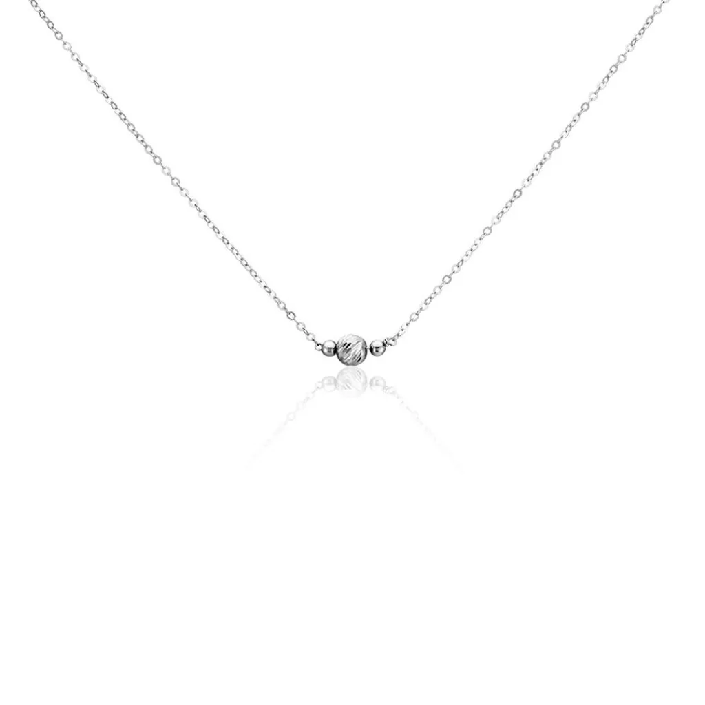 Collier Argent Blanc 925/1000 Boule Effet Diamanté Maille Forçat 45cm