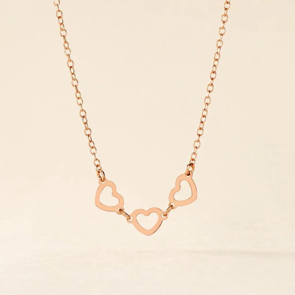 Collier Argent Rose 925/1000 Triple C艙urs Maille Jaseron 38cm
