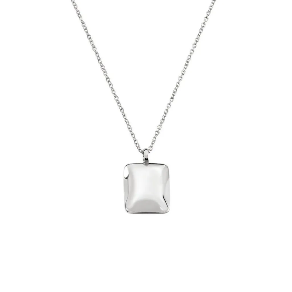 Collier Argent Blanc 925/1000 Motif Carré Effet Facetté Maille Forçat 42+3cm