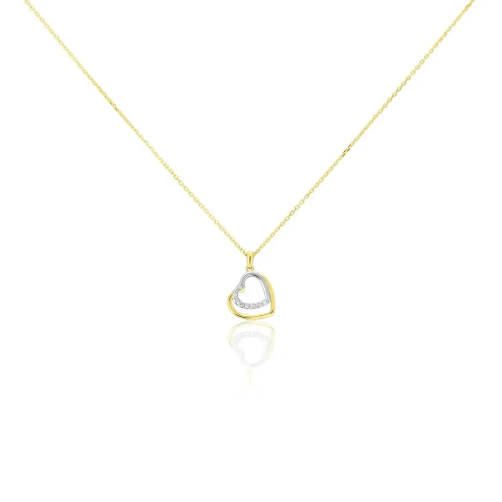 Collier Or 375/1000 Bicolore Jaune Et Blanc Doubles C艙urs Maille Forçat Pavage Diamants 40+2cm