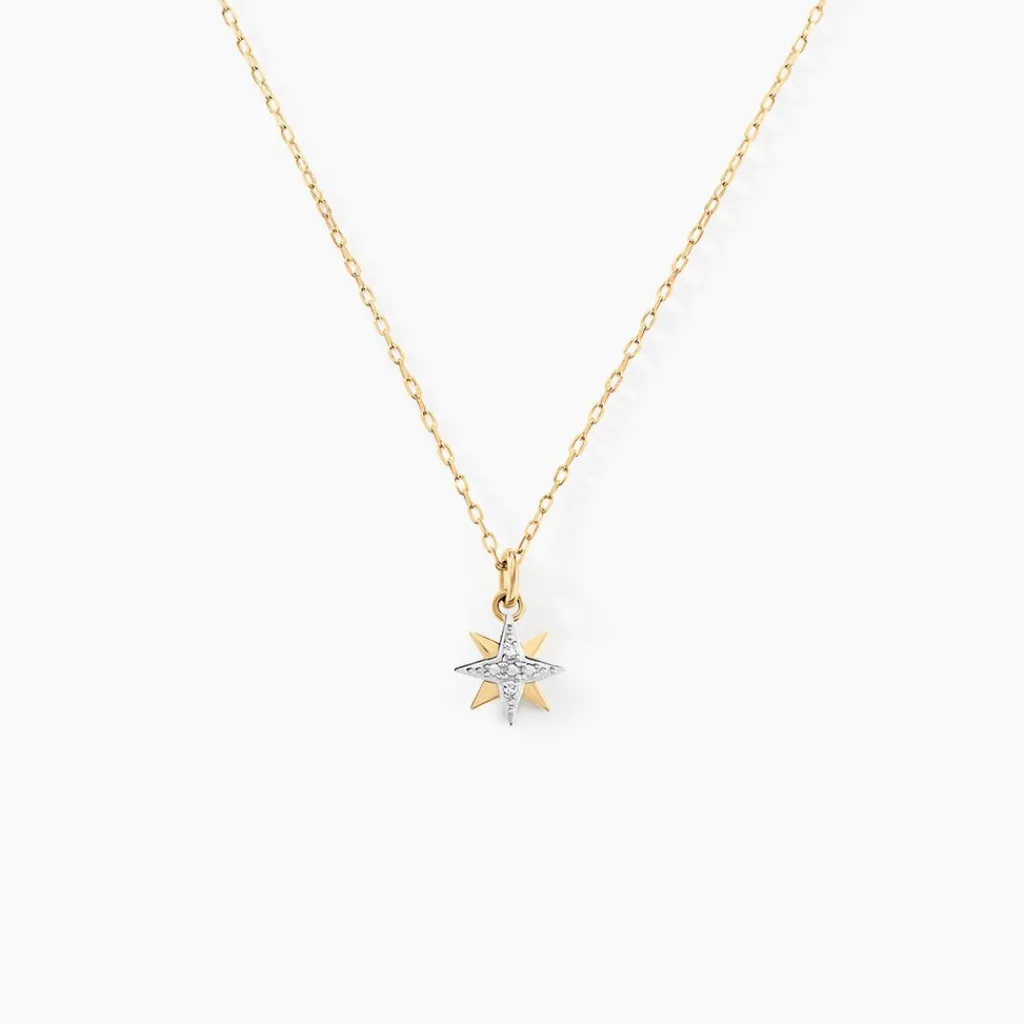 Collier Or Jaune 375/1000 Etoile Diamant 0.007cts Illusion Maille Forcat 40+2cm