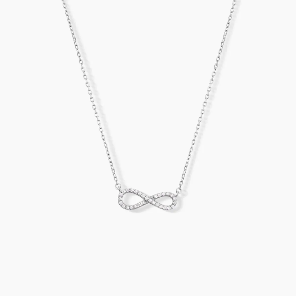 Collier Argent 925/1000 veda Signe Infini Pavage Oxydes De Zirconium Chaine Maille Forcat 40cm