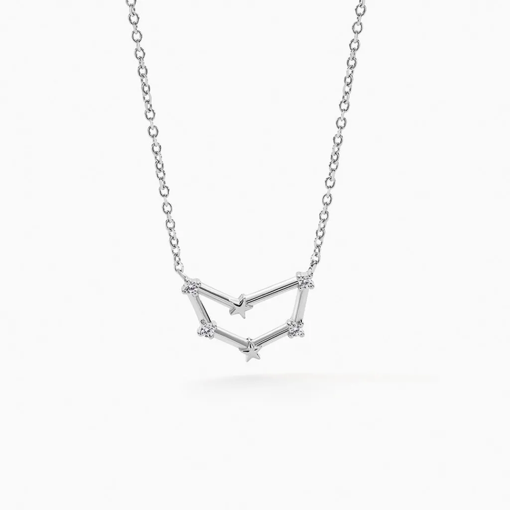Collier Argent Blanc 925/1000 Constellation Zodiaque Capricorne Oxydes De Zirconium Maille Forçat 42+3cm