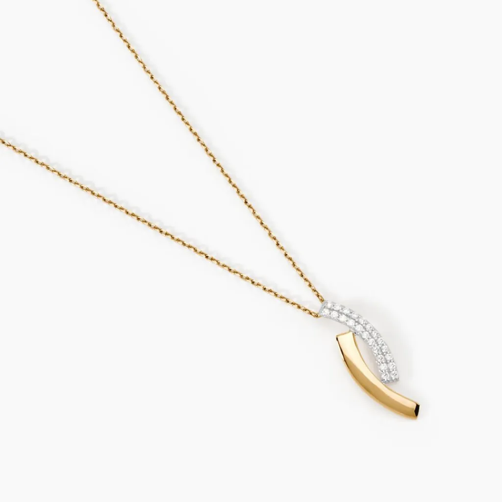 Collier Or Jaune 375/1000 Pavage Oxydes De Zirconium Ruban 43cm