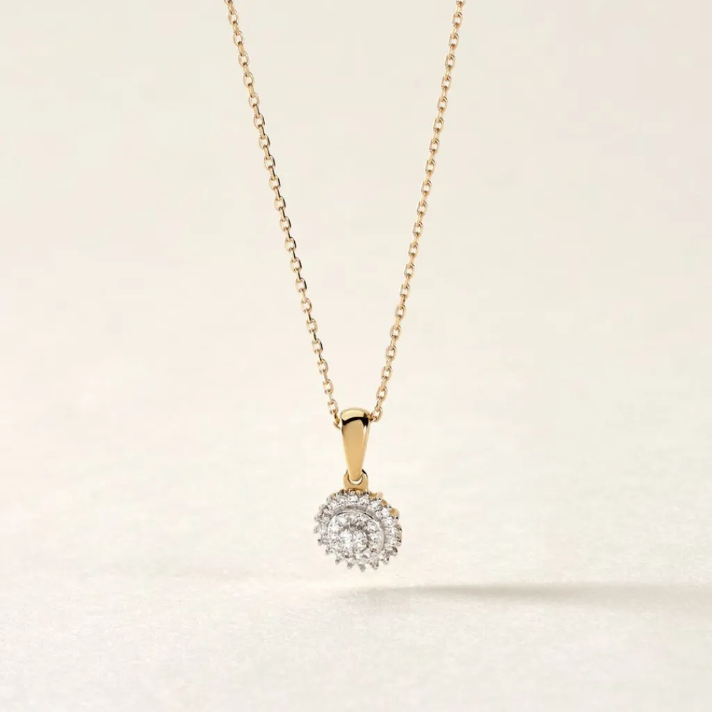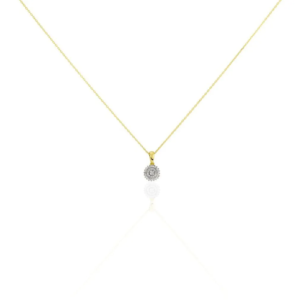 Collier Or Jaune 375/1000 Forme Chou Pavage Diamants Blancs 0.11ct Maille Forçat 40+2cm