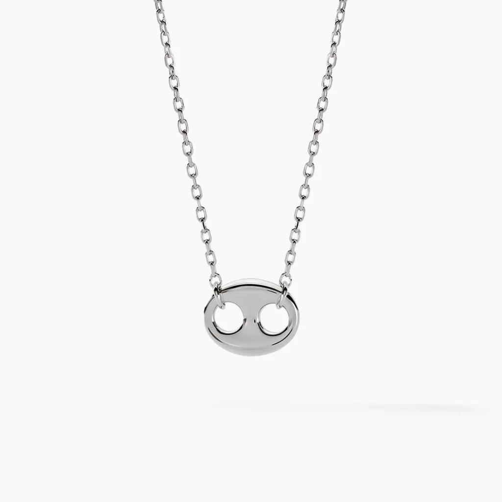 Collier Argent Blanc 925/1000 Motif Grain De Café Maille Forçat 42+3cm