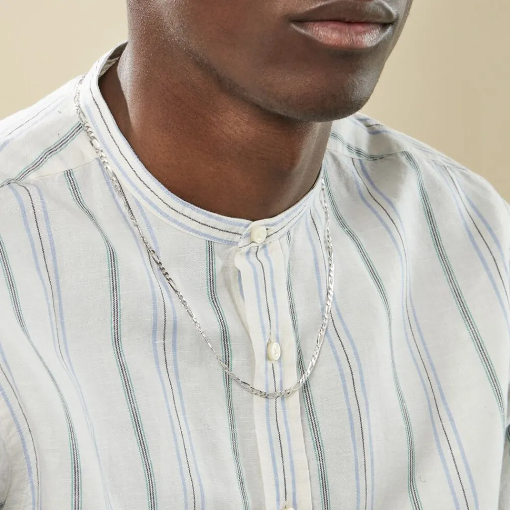 Collier Argent Blanc 925/1000 Maille Alternee 1/3 Largeur 4.2mm 60cm