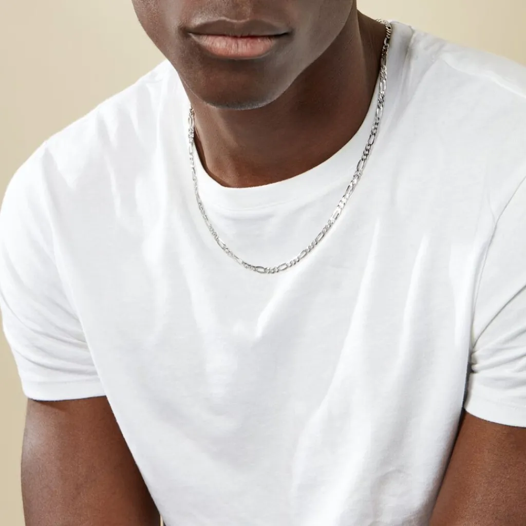 Collier Argent Blanc 925/1000 Maille Alternee 1/3 Largeur 4.2mm 55cm