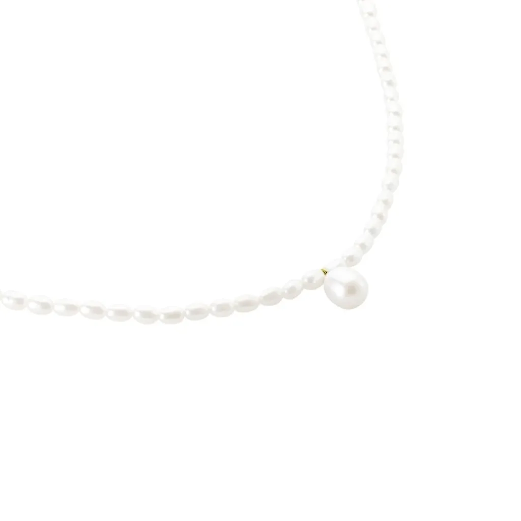 Collier Or Jaune 375/1000 Perles De Culture 3.5/4mm Et 7.5/8mm Grain De Riz Et Poire 45cm