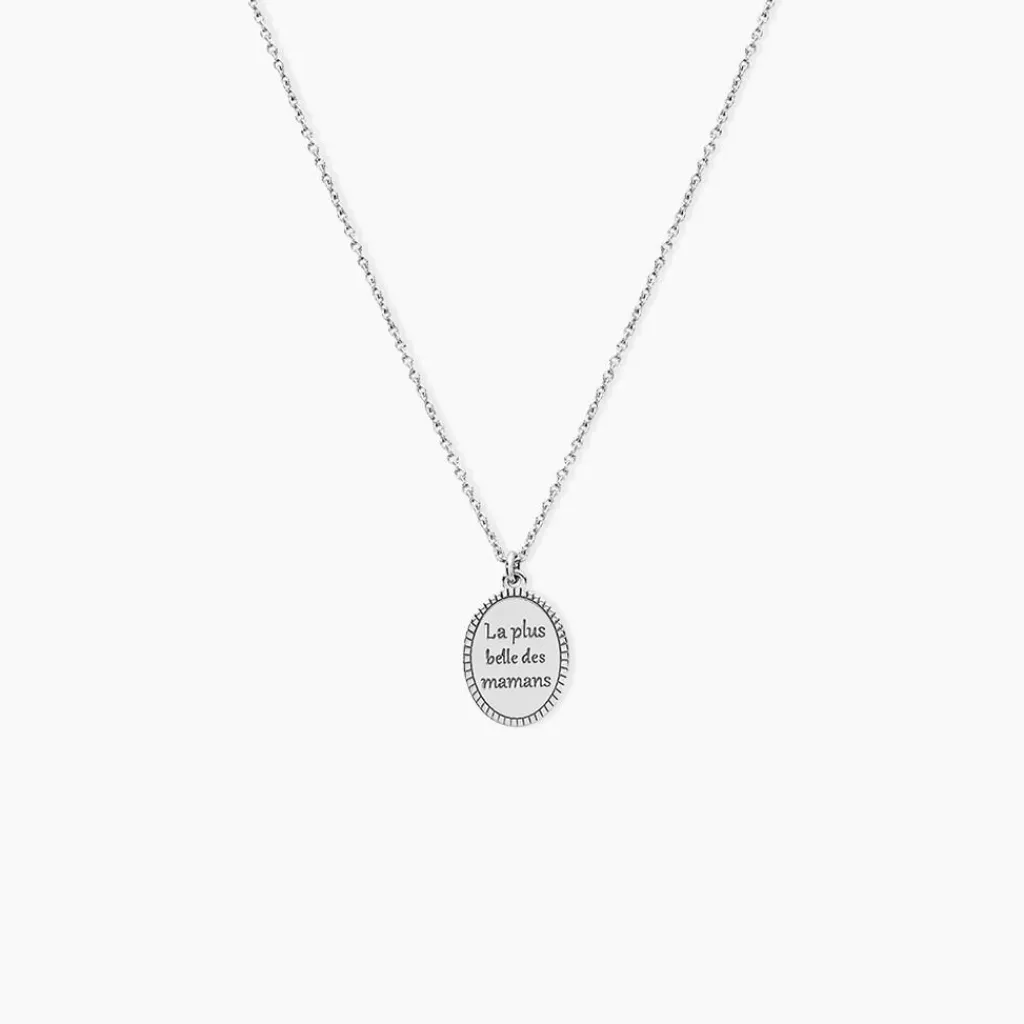 Collier Argent Blanc 925/1000 Plaque Ovale Entourage Perlé Message La Plus Belle Des Mamans Maille Forçat 42+3cm