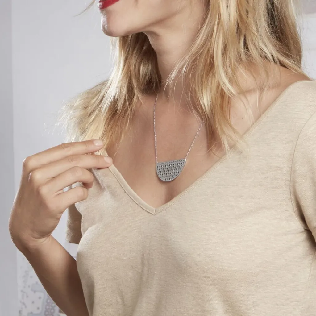 Collier Acier Forme Demi Cercle Motifs Geometriques Ajoures 53cm