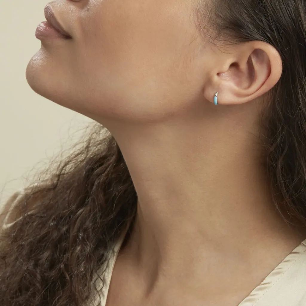 Créole Unitaire Argent Blanc 925/1000 Email Bleu Diamètre 10mm