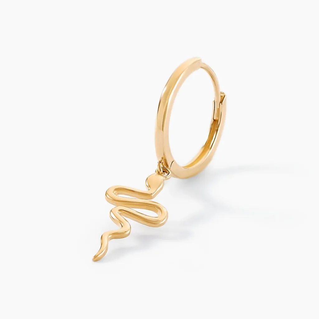 Creole Unitaire Or Jaune 375/1000 Fil Rond Pampille Serpent Diametre 10mm