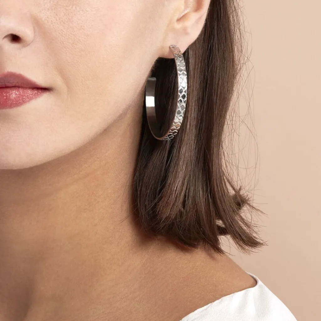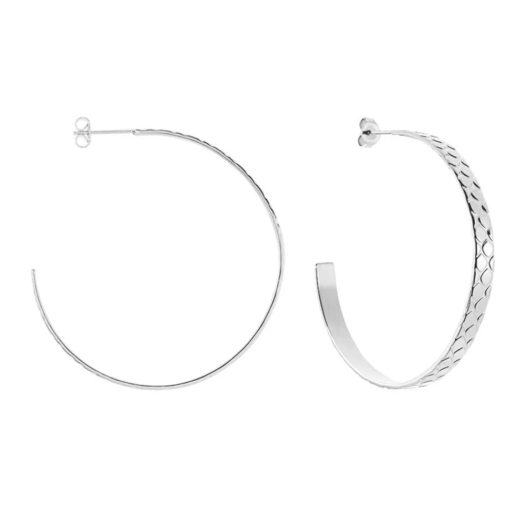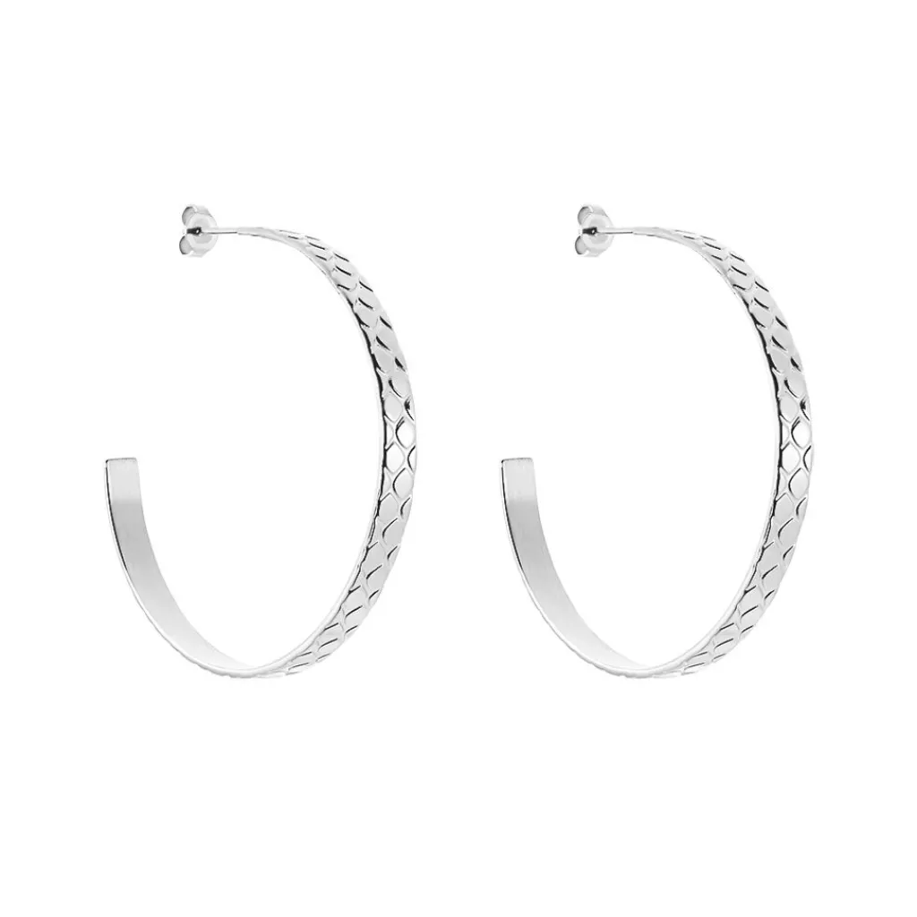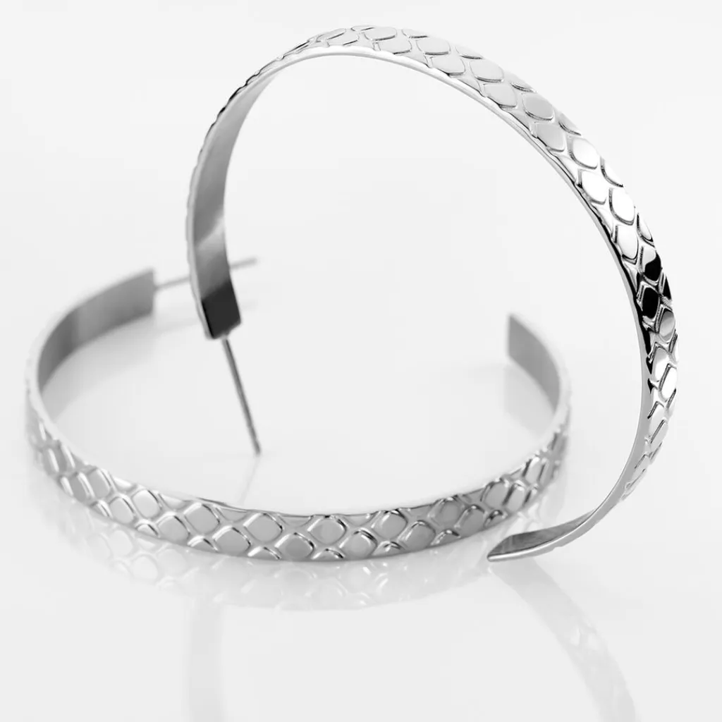 Creoles Acier Blanc Ouvertes Aspect Reptile