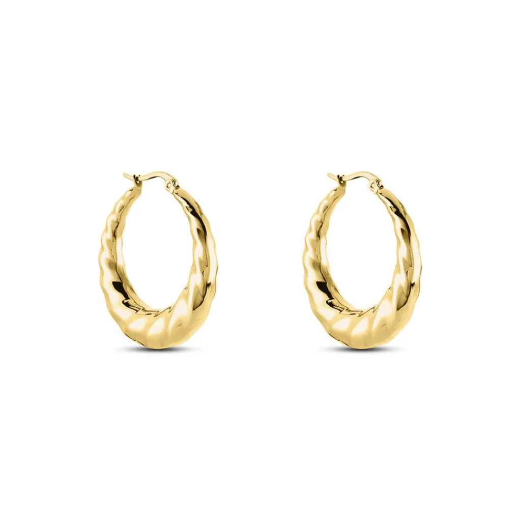 Créoles Acier Inoxydable Jaune Effet Vagues Diametre 22mm