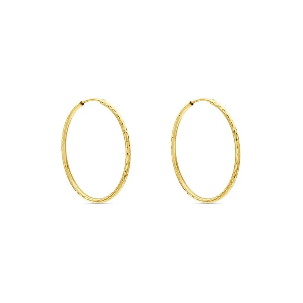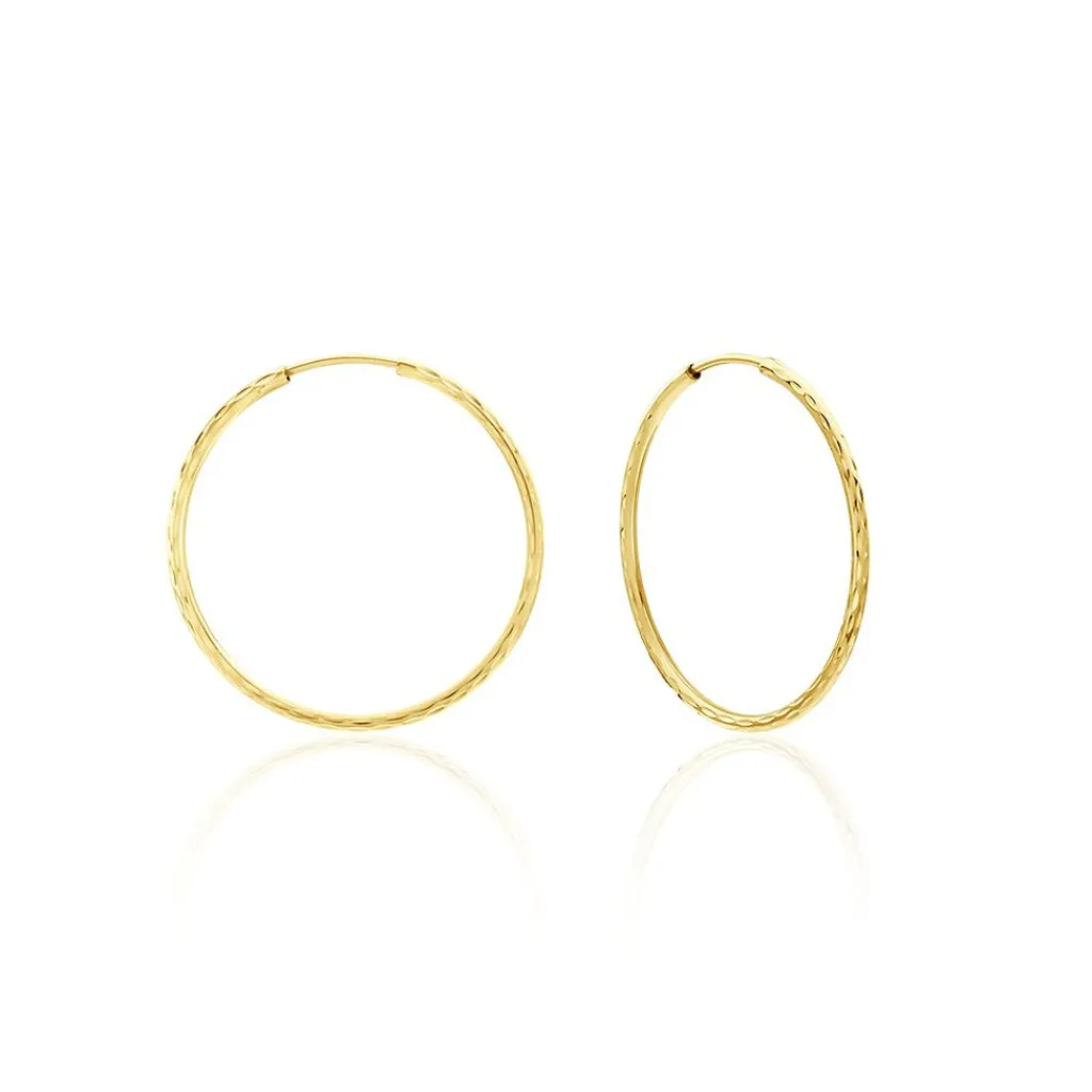 Créoles Or Jaune 375/1000 Flexibles Effet Diamanté Largeur 1.3mm Diametre 25mm