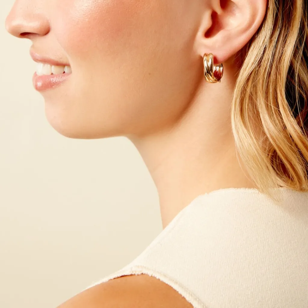 Créoles Plaqué Or Jaune Fils Croisés Largeur 2Cm Diamètre 20Mm