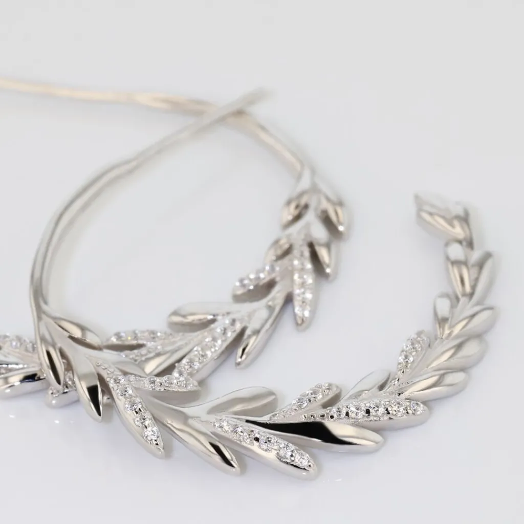 Creoles Ouvertes Argent Blanc 925/1000 Feuillage Micro Setting Oxydes De Zirconium Diametre 30mm