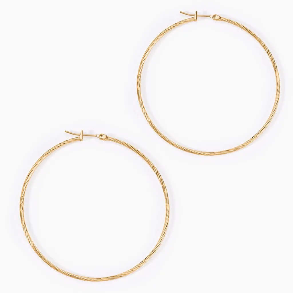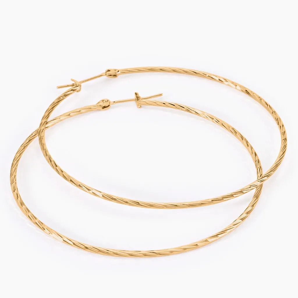 Creoles Plaqué Or Jaune Effet Diamante Diametre 60mm