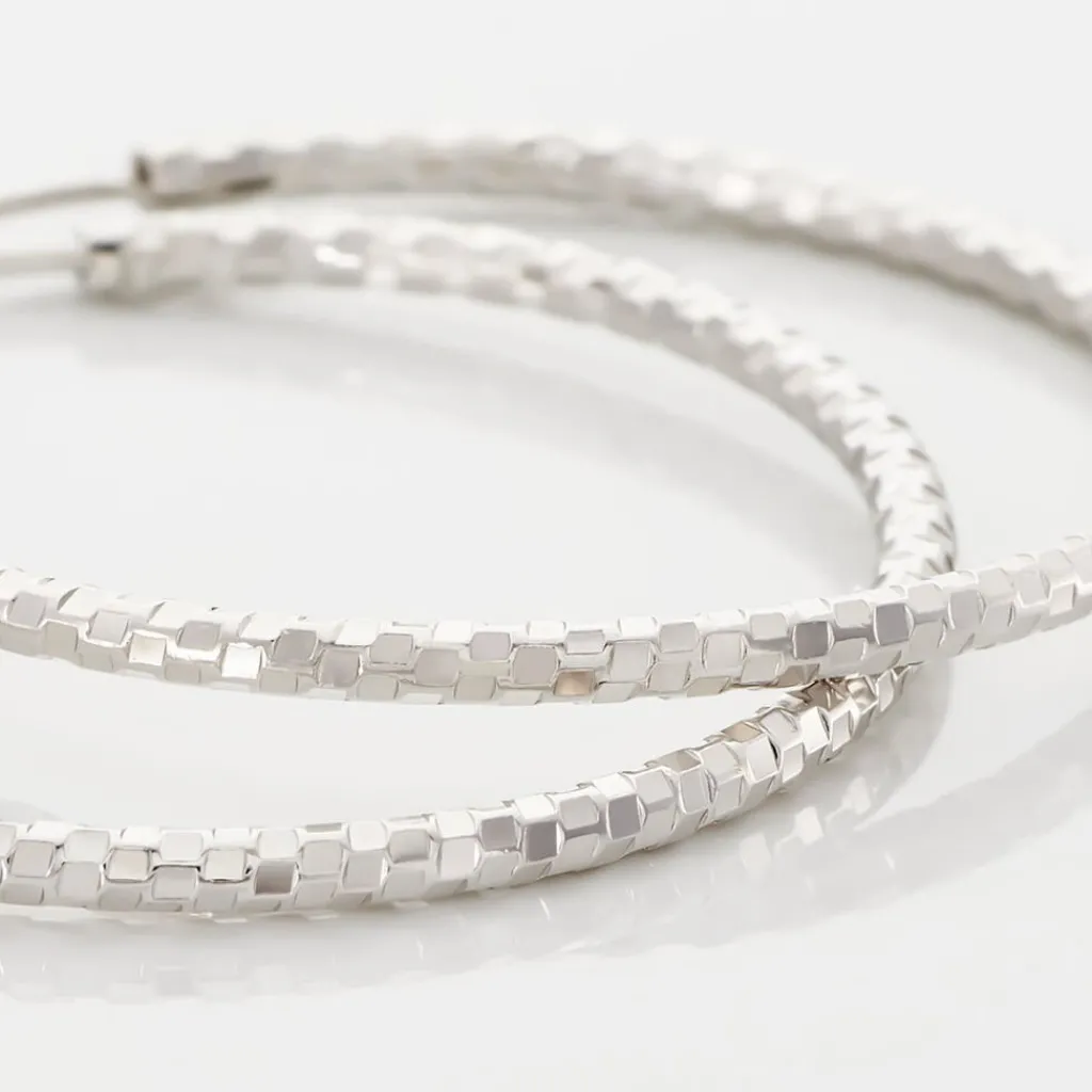 Créoles Argent Blanc 925/1000 Diamantees Largeur 2mm Diametre 30mm