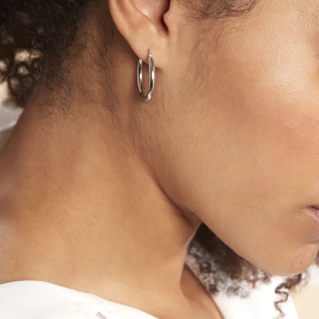 Créoles Argent Blanc 925/1000 Lisses Largeur 3mm Diametre 20mm