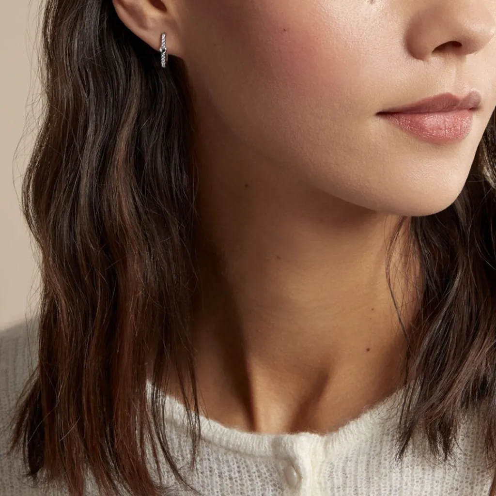 Creoles Argent Blanc 925/1000 Motifs C艙urs Et Pavage Oxydes De Zirconium Diametre 10mm