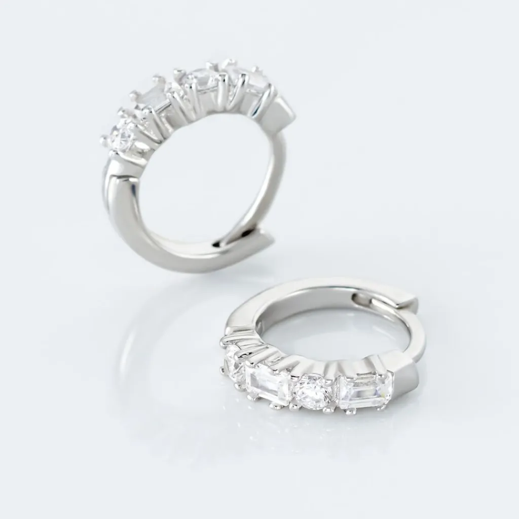 Créoles Argent Blanc 925/1000 Oxydes De Zirconium Sertis Griffes Diamètre 13mm