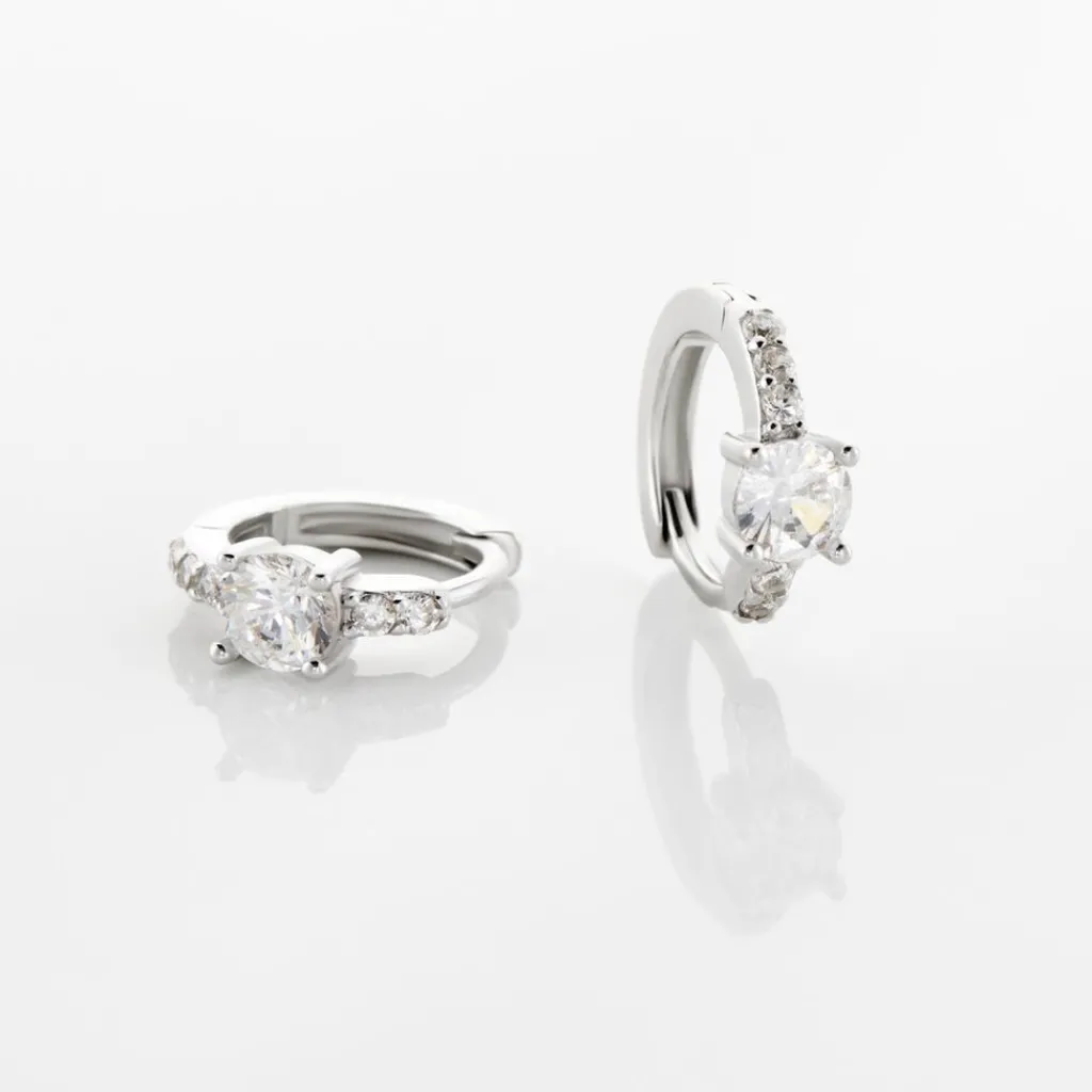 Creoles Argent Blanc 925/1000 Pavage Oxydes De Zirconium Avec Oxydes De Zirconium Serti Griffes Centrales
