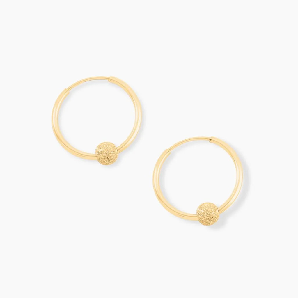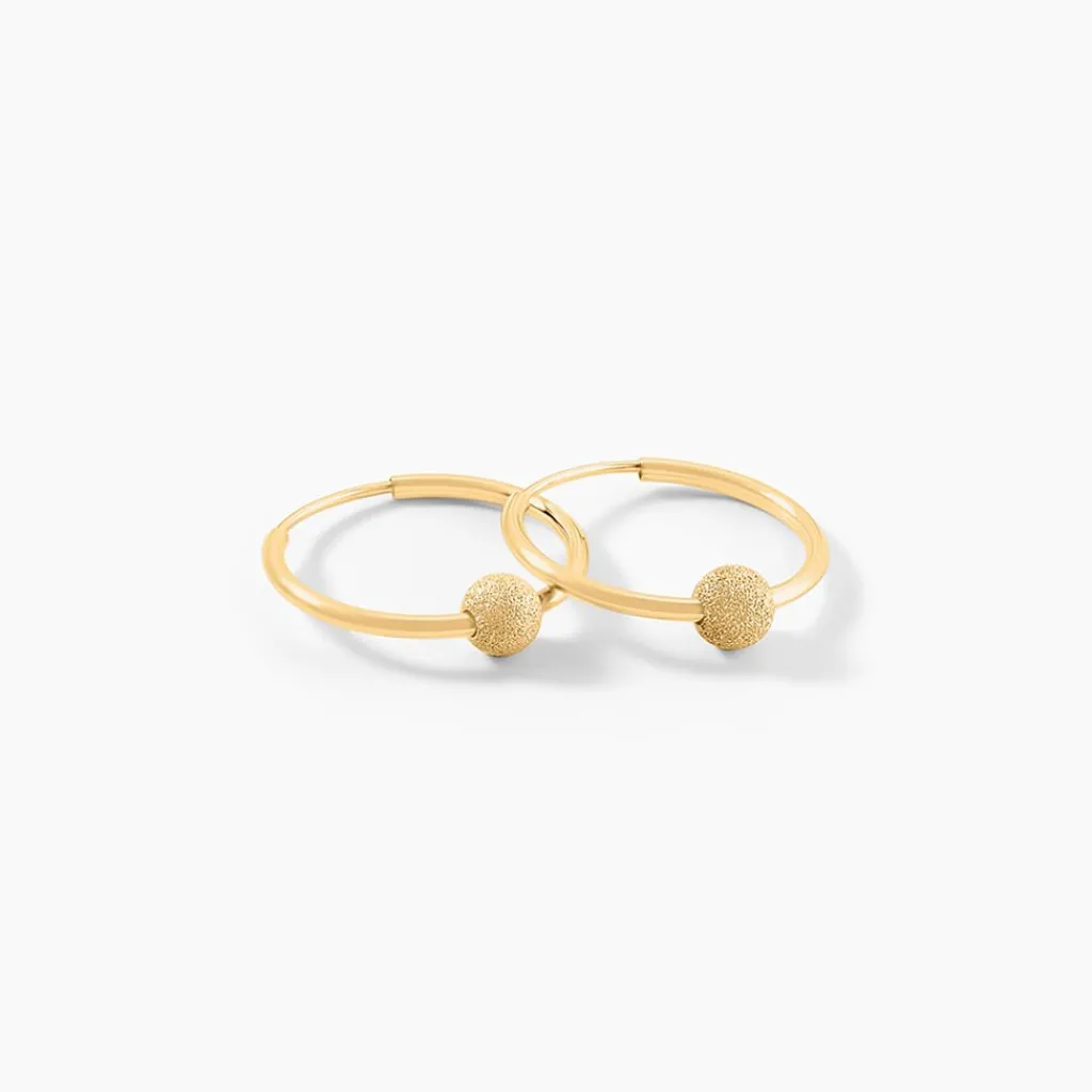 Créoles Or Jaune 375/1000 Boules Effet Sablé Fil Flexible Lisse Largeur 1.2mm Diamètre 16mm