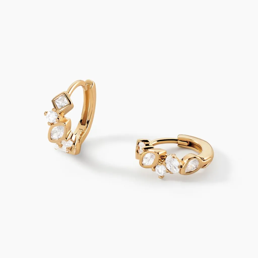 Créoles Plaqué Or Jaune Oxydes De Zirconium Tailles Navette Et Poires Serti Clos Diamètre 8.5Mm