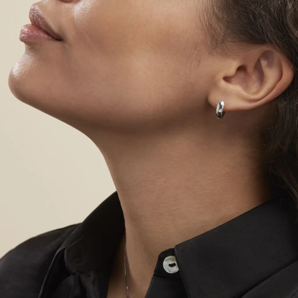 Créoles Argent Blanc 925/1000 Bords Diamantes Largeur 4.1mm Diametre 10mm