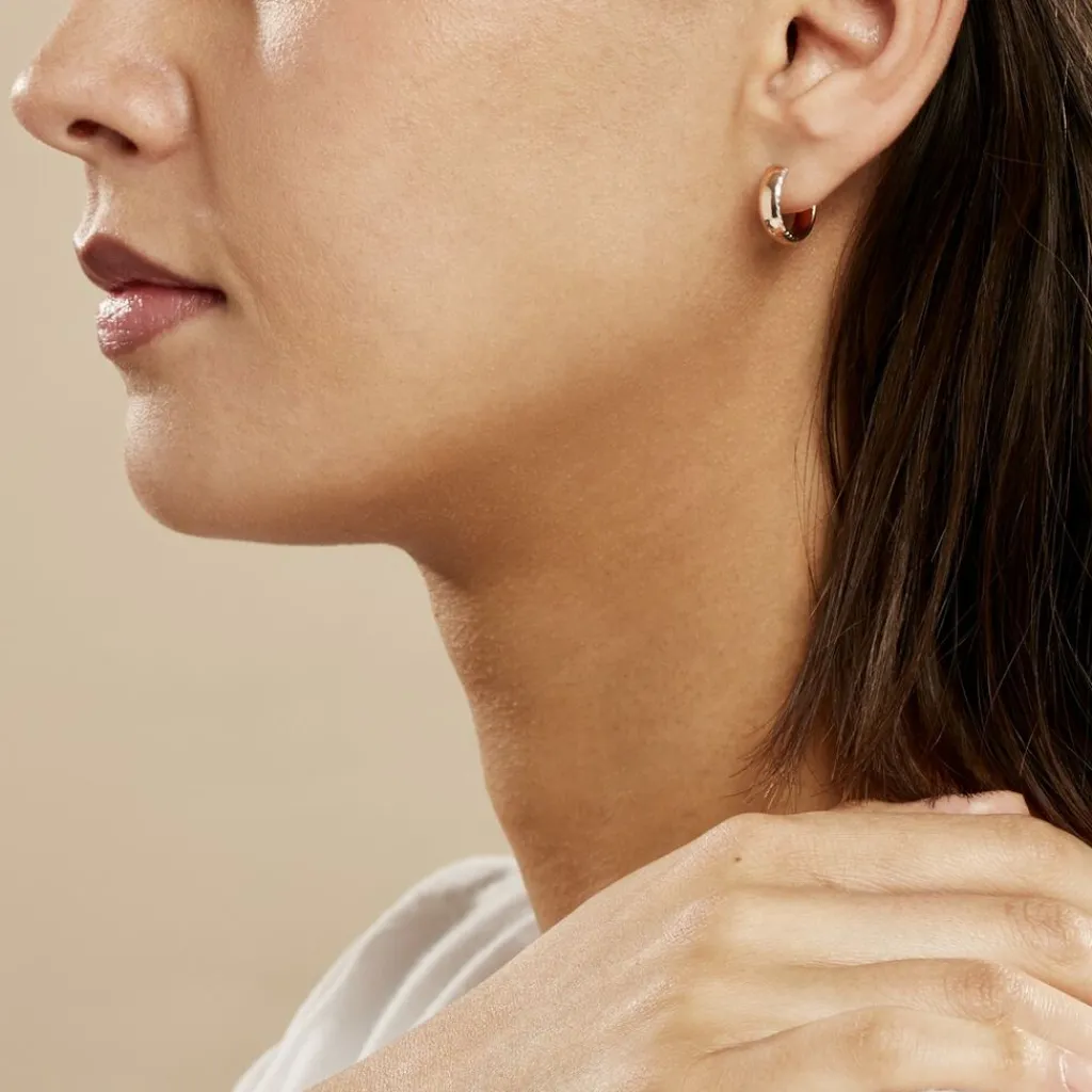 Créoles Argent Rose 925/1000 Bords Diamantes Largeur 4.1mm Diametre 10mm