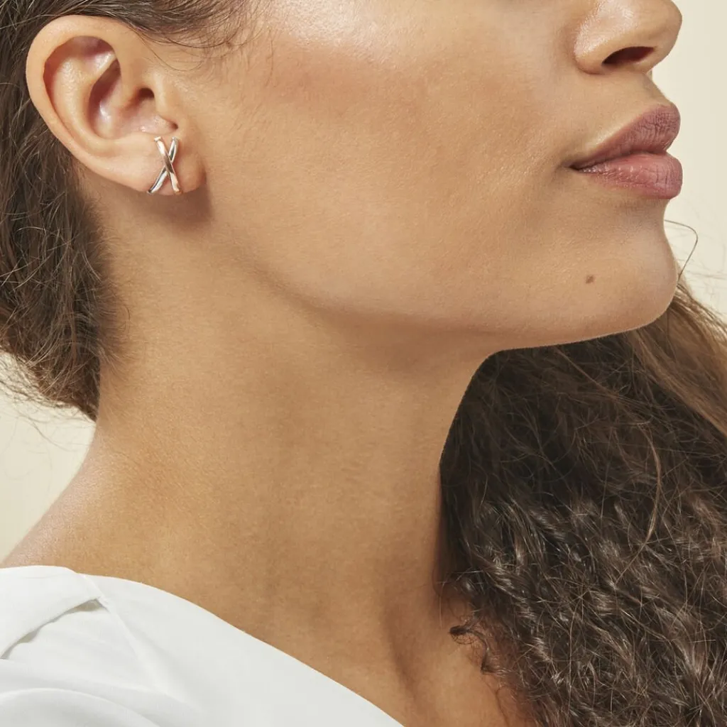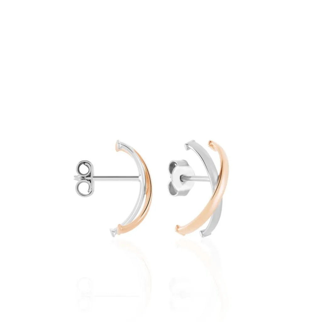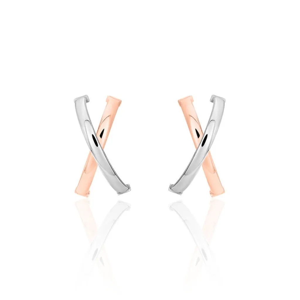 Demi Creoles Or Bicolore Rose Et Blanc 375/1000 Croisees Bicolore Diametre 15mm