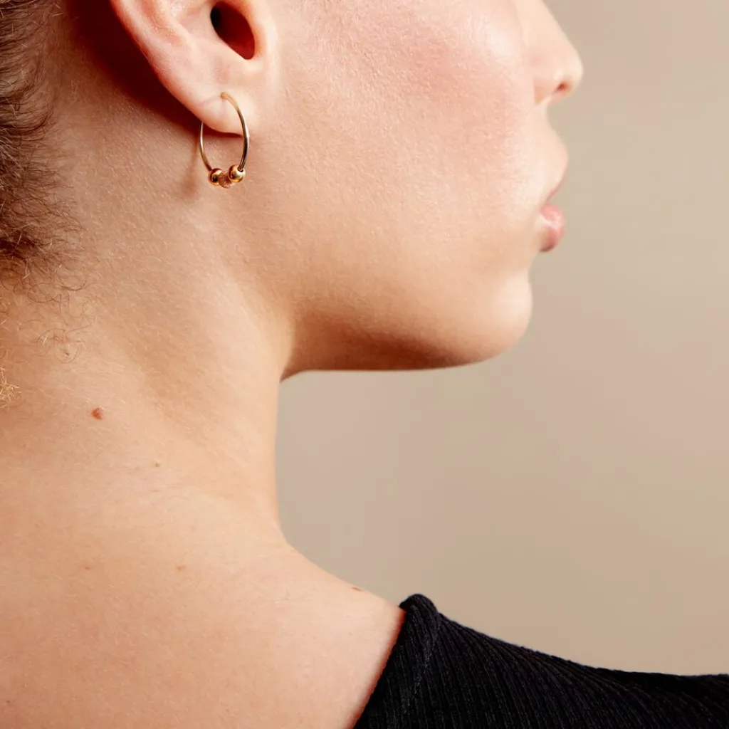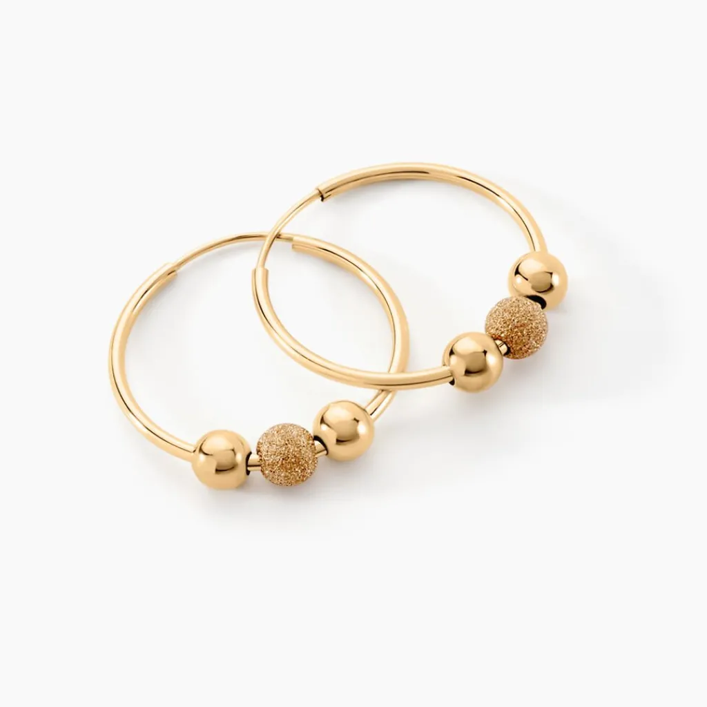 Créoles Or Jaune 375/1000 Boules Effet Lisse Et Sablé Fil Flexible Lisse Largeur 1.2mm Diamètre 20mm