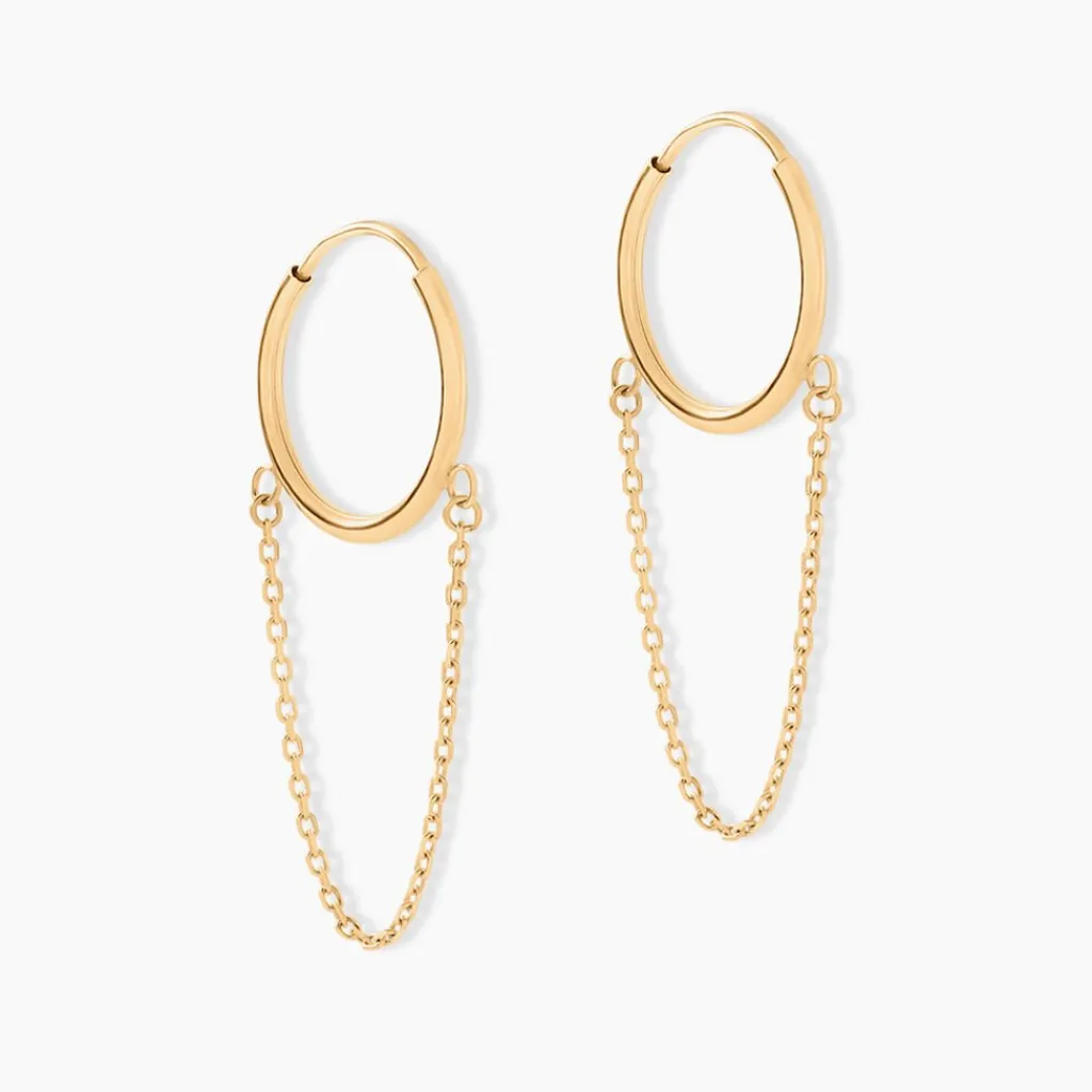Creoles Pendantes Or Jaune 375/1000 Fil Rond Chaine Forcat Diametre 12mm