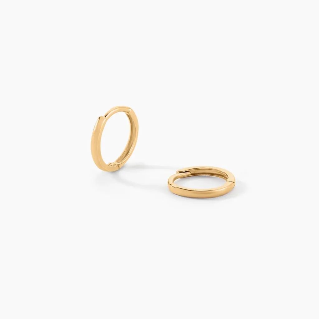 Creoles Or Jaunes 375/1000 Fil Demi Jonc Diametre 8mm