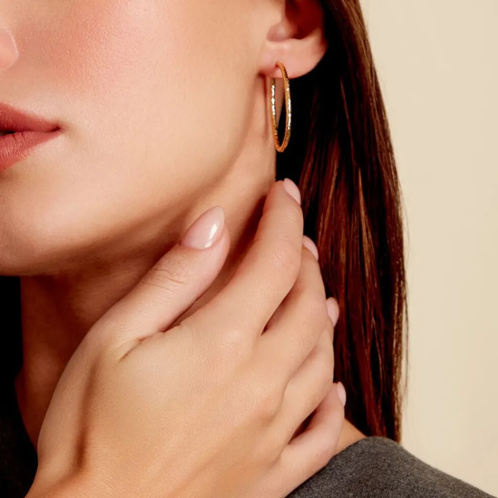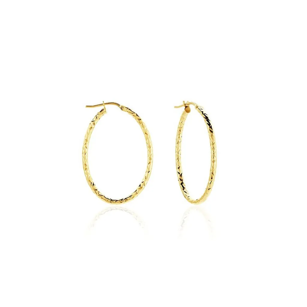 Creoles Or Jaune 375/1000 Ovales Fil Rond Effet Diamante Largeur 2mm Diametre 35.52mmx24.42mm