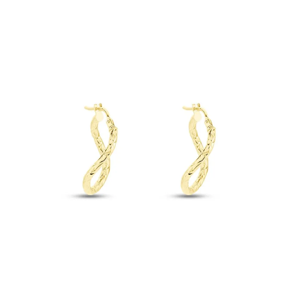 Creoles Or Jaune 375/1000 Ovales Fil Vrille Effet Diamante Largeur 2mm Diametre 22.2mmx15.44mm