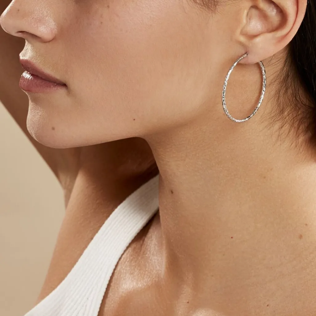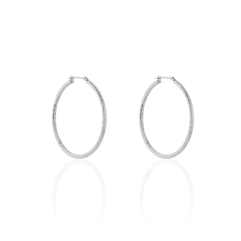 Créoles Or Blanc 375/1000 Fil Rond Effet Diamanté Largeur 2mm Diamètre 35mm